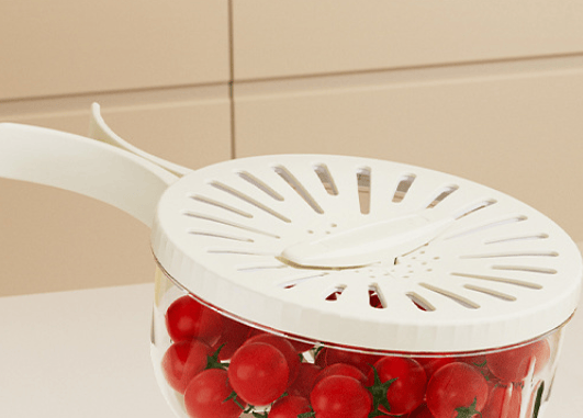 Our draining basket comes with an innovative rotating lid that can be easily opened or closed with a simple twist. This design allows for quick access when adding or removing produce and seals tightly to ensure the contents stay fresh and clean during washing or storage.
